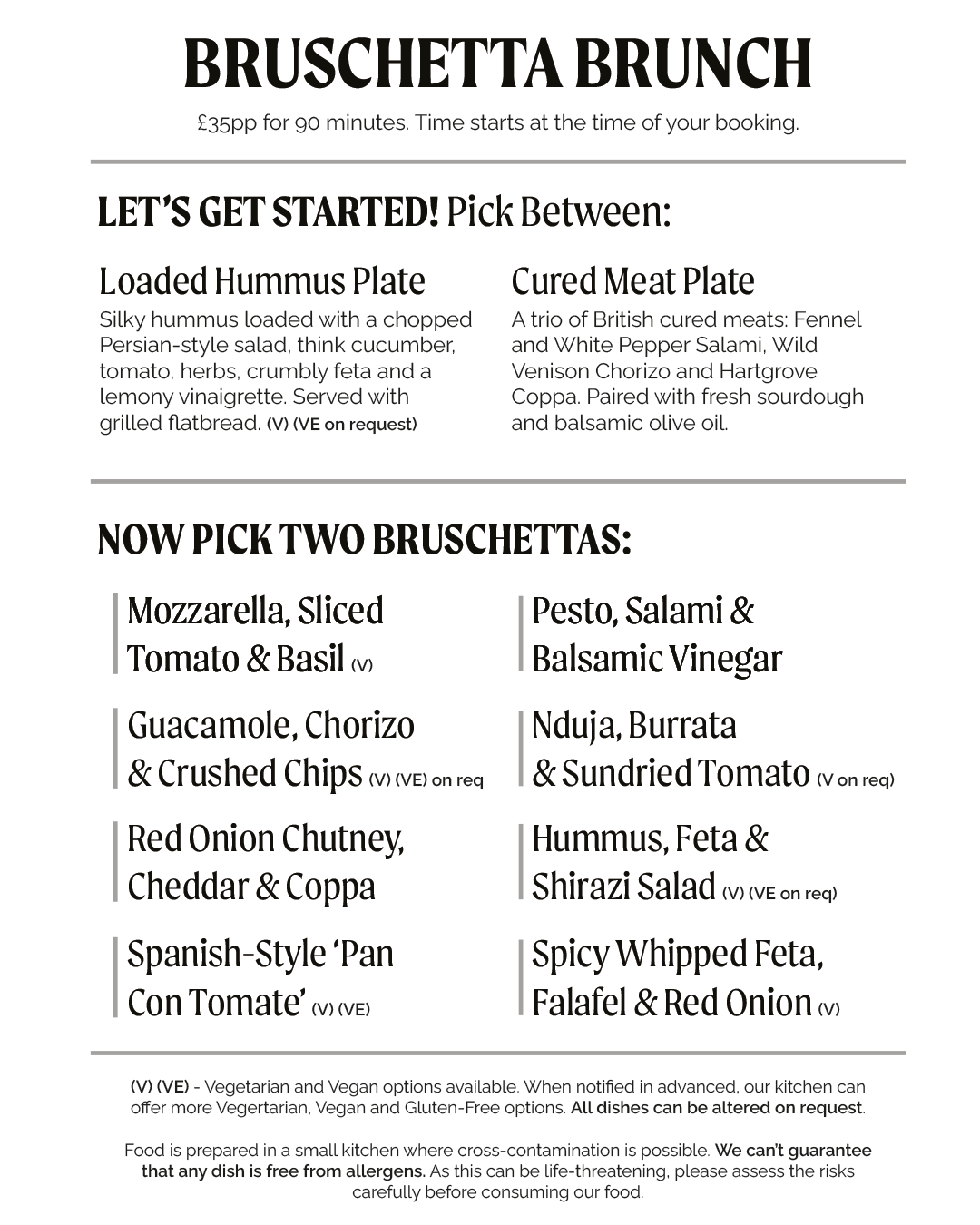 - Vegetarian, Vegan & Gluten Free options are available, please make this known when booking.