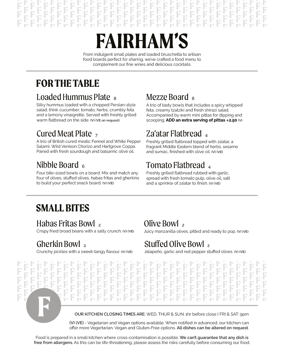 Please be aware that our food is prepared in a small kitchen with lots of different ingredients, some of these are allergens including: SEASME, NUTS, PEANUTS, DAIRY, EGG, GLUTEN, MUSTARD, LUPIN, FISH, CRUSTATIONS, SOYA and SULPHITES.